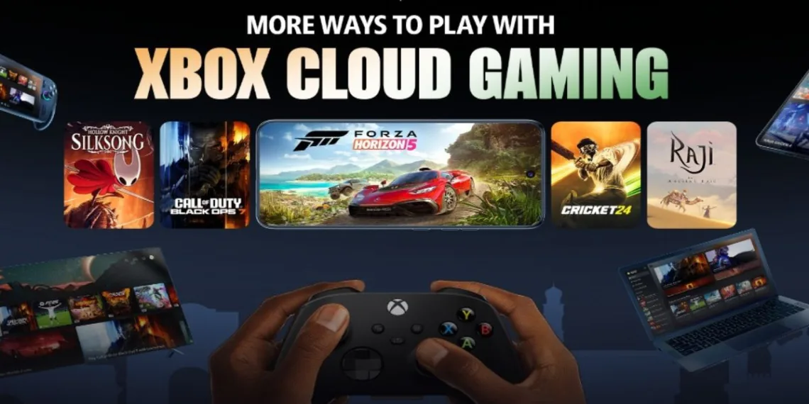 The service includes new releases like Hollow Knight: Silksong and Indian titles such as Raji: An Ancient Epic, alongside blockbuster franchises like Halo, Forza, and Gears of War. Players can also access Call of Duty: Black Ops 7, Detective Dotson, and The Palace on the Hill.