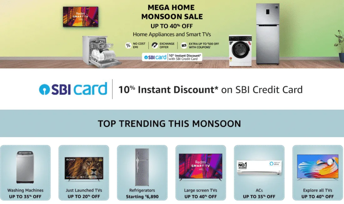 During the “Mega Home Monsoon Offer”, customers can look forward to savings on some of the best home-appliance brands such Samsung, LG, Whirlpool, Haier, and Godrej. They can also save more with an additional 10% discount through SBI Credit Card and shop conveniently with scheduled delivery, exchange offers, no-cost EMI options, installation and more.
