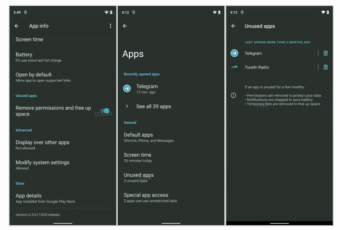 The new feature will also clear the app’s temporary files and cache from the phone’s storage in addition to revoking privileges. App data appears to remain on the device, so the storage freed through the process is minimal. However, it’s still a step towards clearing some storage space on Android devices, especially those with a low build.