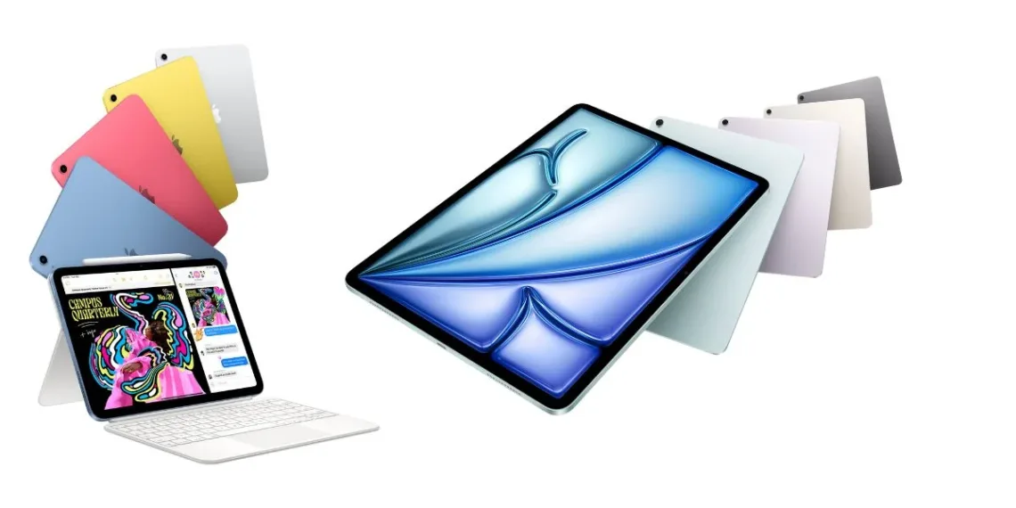The iPad Air comes in Blue, Purple, Starlight, and Space Grey, while the iPad 11 is available in Blue, Pink, Yellow, and Silver.