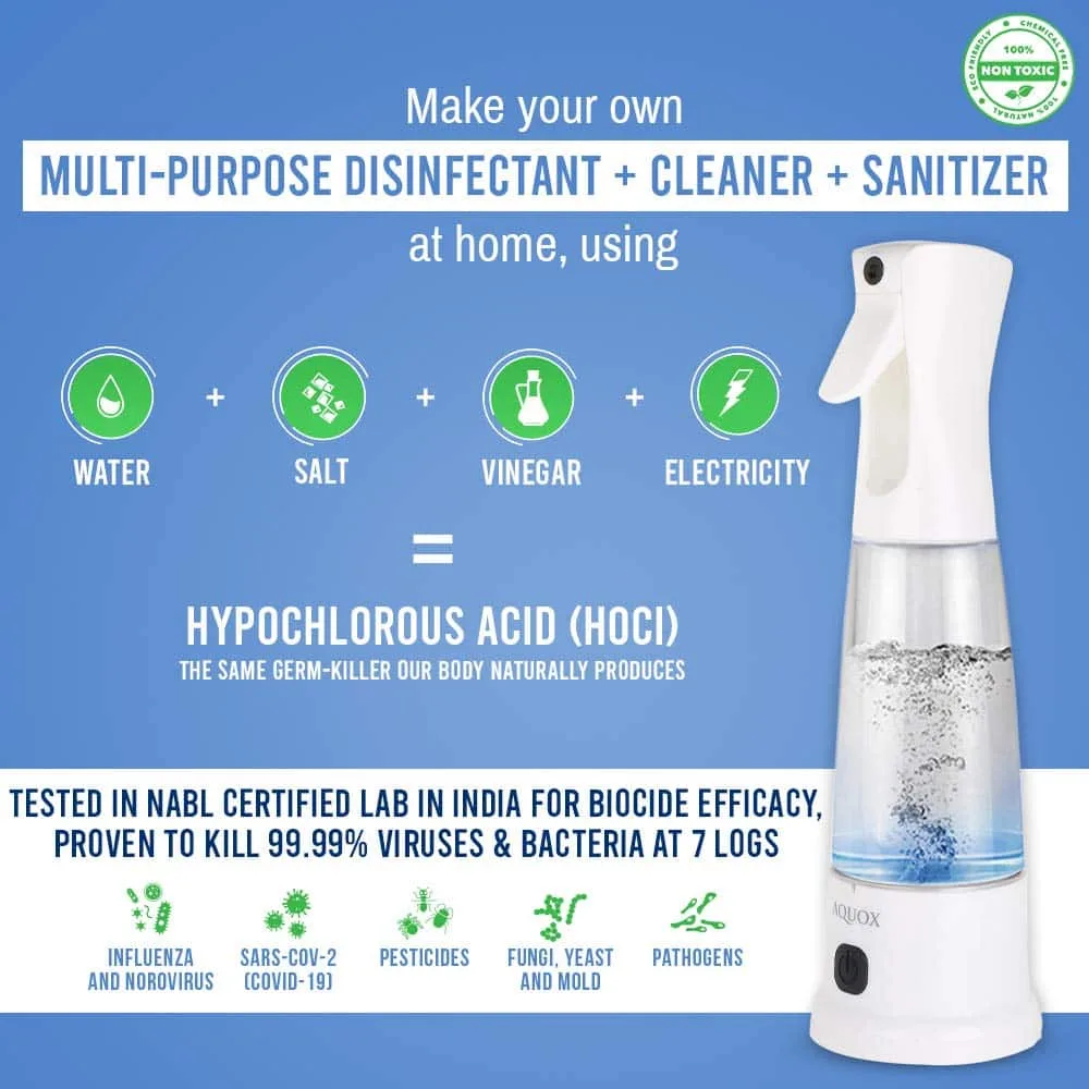 While we may think that conventional disinfecting products containing chemicals like acid and alcohol are effective at removing bacteria and pathogens, there is absolutely no need to rely on harsh chemicals to clean and sanitize your home or your surroundings. Indian brand AQUOX is way ahead in promoting safe, natural and chemical-free sanitization practices whether at home or while travelling. After all, sanitisation is the new normal. Being 80 times stronger than conventional bleach-based disinfection & cleaning products, The brand has introduced two variants of modern and convenient Hypochlorous Acid-based Multipurpose Disinfectant + Cleaner + Sanitizer Generator that can eliminate hazardous chemicals as well as fight back bacteria and viruses efficiently in just 30 seconds.