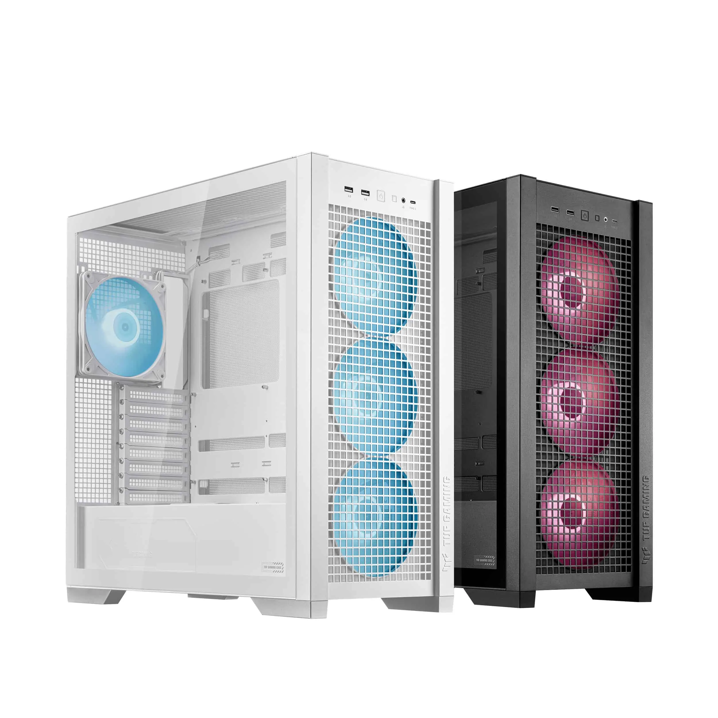 Embracing a minimalist design, the TUF Gaming GT302 ARGB is available in black and white variants, featuring regular geometry and clean lines that effortlessly complement any build. With interchangeable side panels comprising tempered glass and mesh options, users can personalize their PC’s aesthetics according to their preferences, enhancing the overall visual appeal.