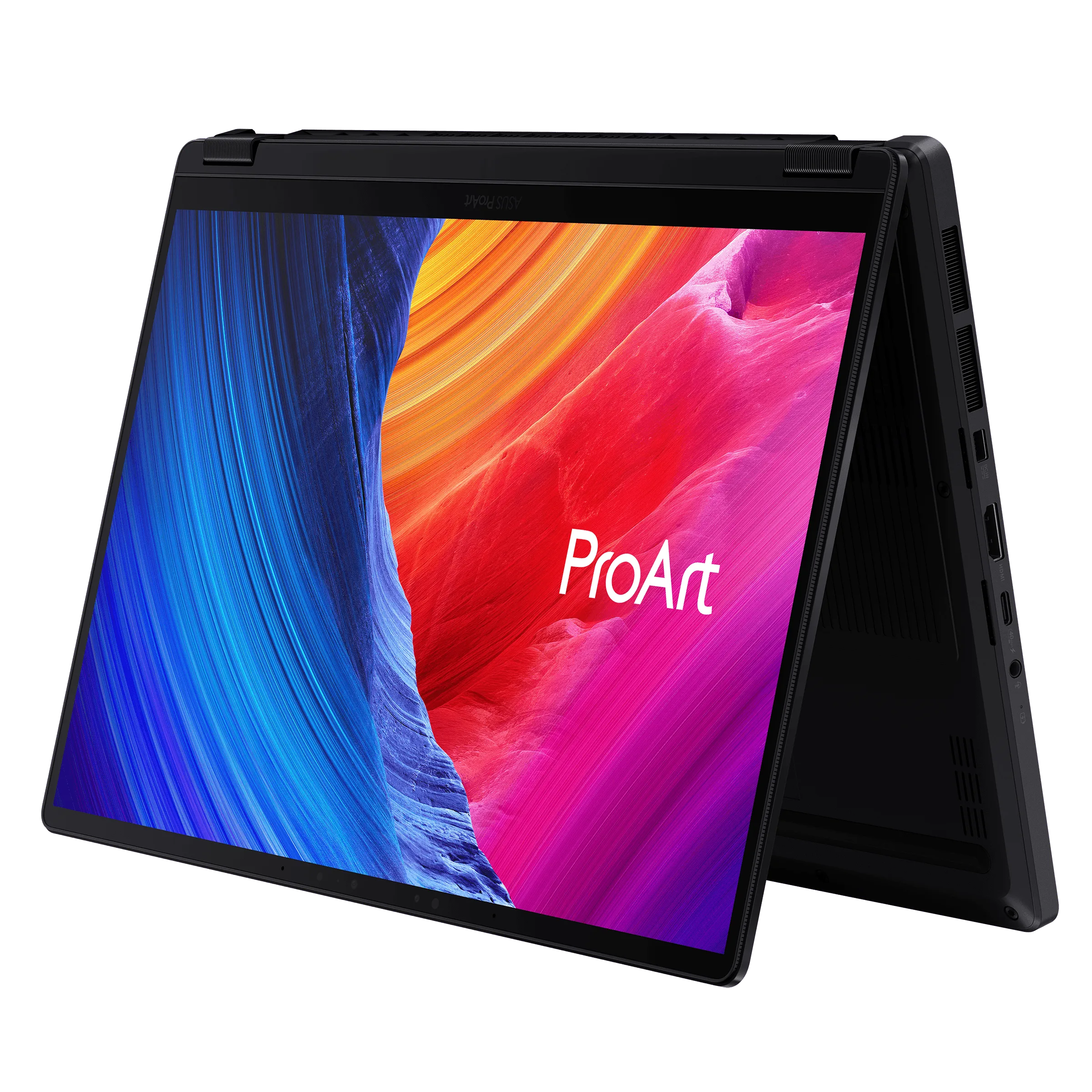 The ProArt PX13 is a slim and lightweight convertible laptop weighing just 1.38 kg, offering creators a portable powerhouse that effortlessly transitions between laptop, tent, stand, or tablet modes. With full stylus support, intuitive input is at your fingertips, allowing you to unleash your creativity in any mode or scenario.