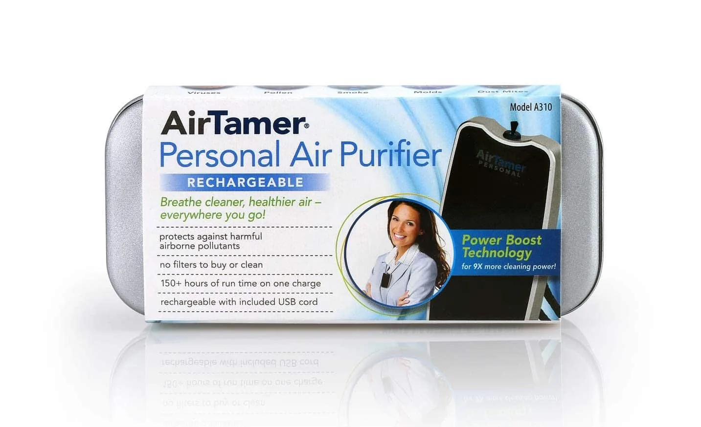 Airtamer is silent in operation and comes with a metal case for storage and travel. A robust USB charging cable is provided along with the product. The device houses a rechargeable lithium battery with almost 150+ hours of runtime. Maintenance of the product is effortless since there are no filters to replace.