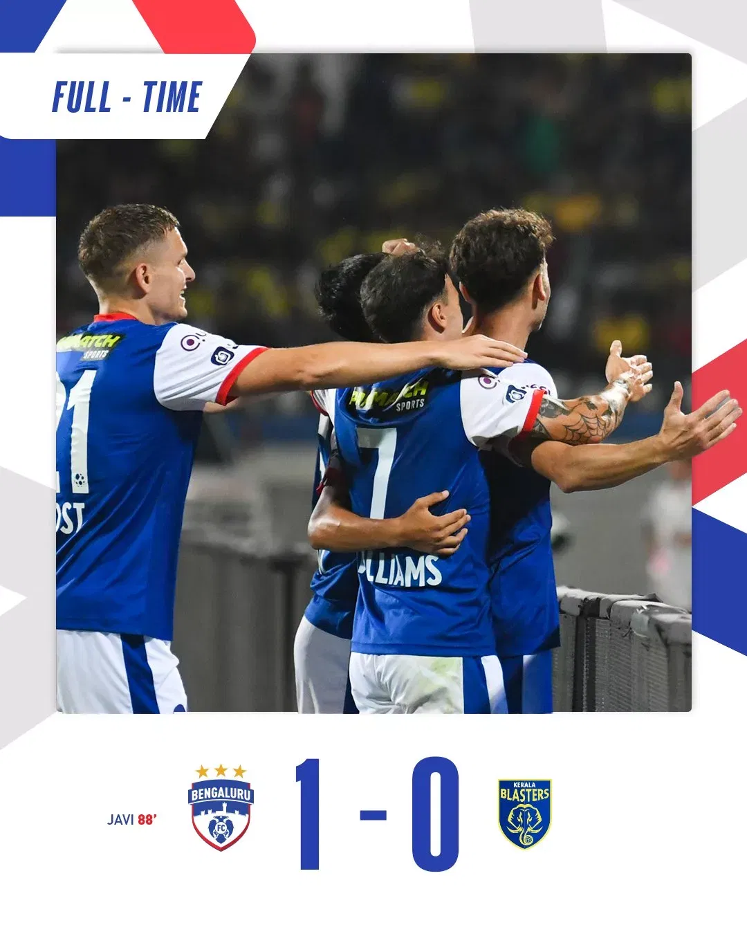 Although Kerala Blasters showed signs of resurgence in the second half, pressing forward in numbers in pursuit of an equalizer, Bengaluru FC’s defense stood firm, thwarting their advances effectively.