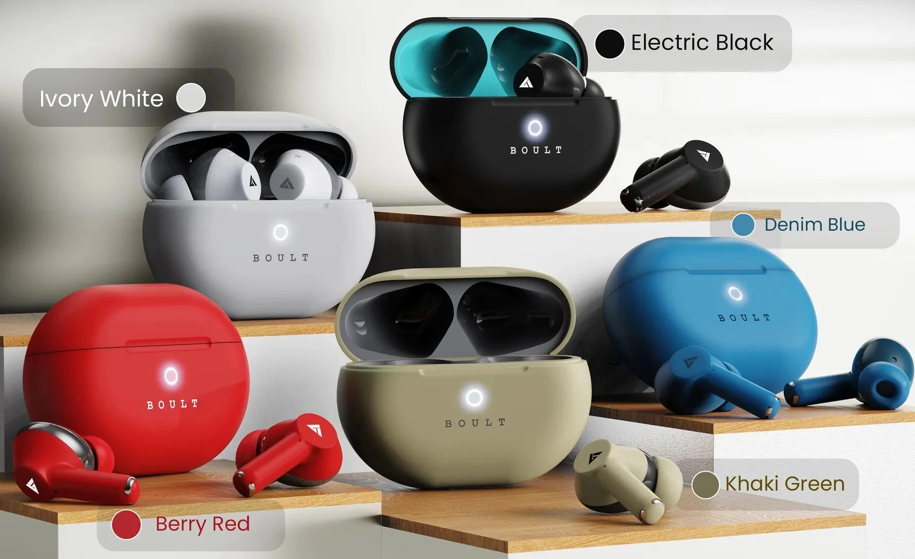 The new Boult Audio K40 TWS earphones were listed as having an initial cost of Rs 2,999. On the other hand, it may be bought for an initial price of Rs 899 on the company’s own website and Amazon. Electric Black, Khaki Green, Berry Red, Ivory White, and Denim Blue are the colors offered for the earphones.