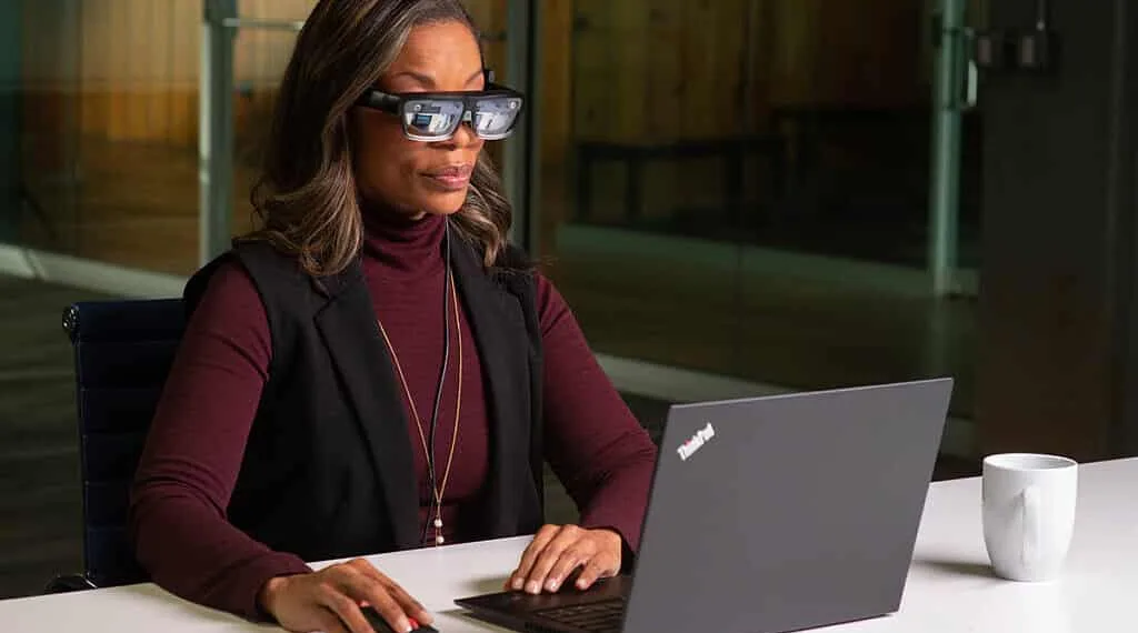 Let’s talk about the ThinkReality A3 PC Edition. The device will tether to a laptop or mobile workstation and enable users to position multiple, large virtual monitors in their field of view and use Windows software tools and applications. It is one of the best features of Virtual monitors and expands the value of PCs.