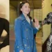 Accessories are kept minimal but impactful. A classy bag slung over her shoulder adds a touch of everyday elegance, while a delicate necklace and statement bracelet provide just the right amount of sparkle. It’s a look that proves animal print can be both bold and refined, perfect for everything from a night out on the town to a glamorous daytime event.