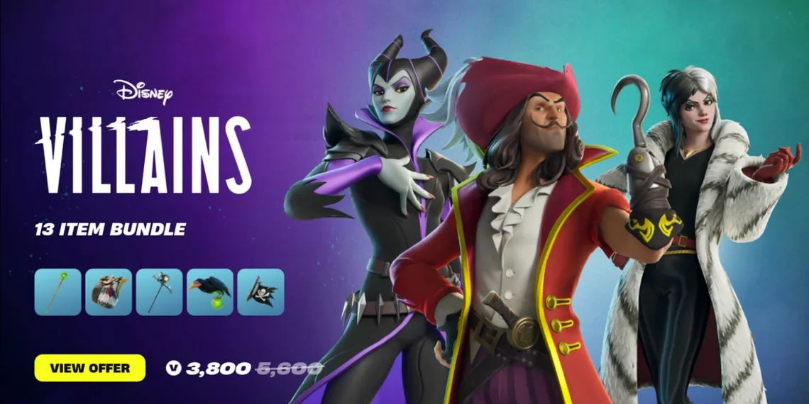 For those who want to go full dark side, the Disney Villains Bundle is your golden ticket. Priced at a villainously good 3,800 V-Bucks, this bundle gets you everything – and I mean everything – in the Disney Villains Set. We’re talking outfits, back blings, pickaxes, the works!