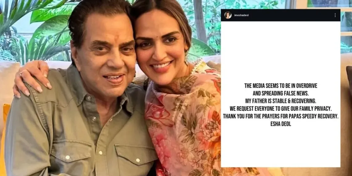 Esha Deol Sets Record Straight: Dharmendra “Stable and Recovering” Amid Death Hoax