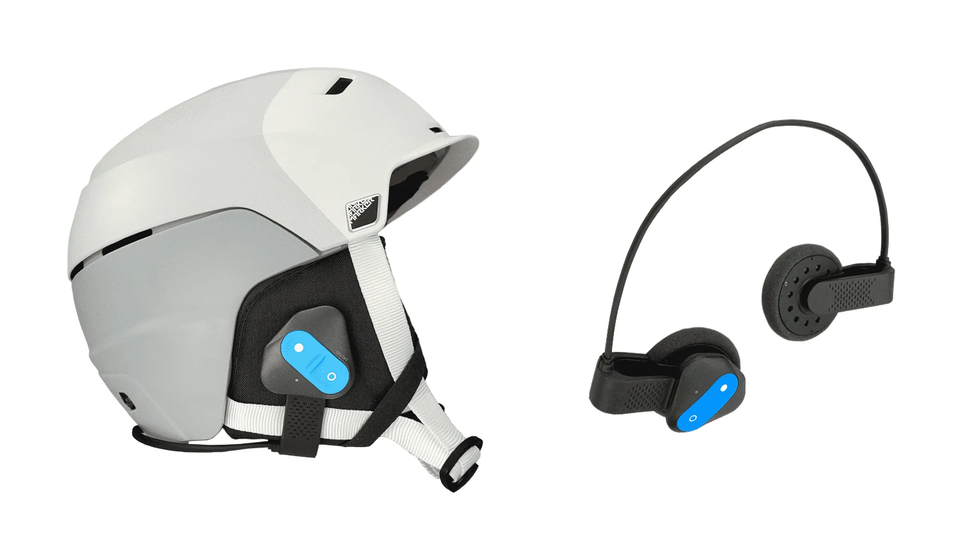 SkiTooth is a communication and music device that connects to your smartphone using Bluetooth technology. Thanks to its integrated dual microphone, you can make/receive a call. SkiTooth is made with 2 speakers (L and R) that allow you to listen to music with great audio quality and lots of bass.