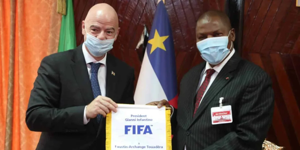 BANGUI, Central African Republic, February 18, 2021/ — A meeting with President Faustin-Archange Touadéra, a national honour from the Central African Republic, and a presentation of a ground-breaking project involving the Central African Republic Football Association (RCA), the French Football Federation (FFF) and FIFA, highlighted FIFA President Gianni Infantino’s first-ever visit to Bangui.