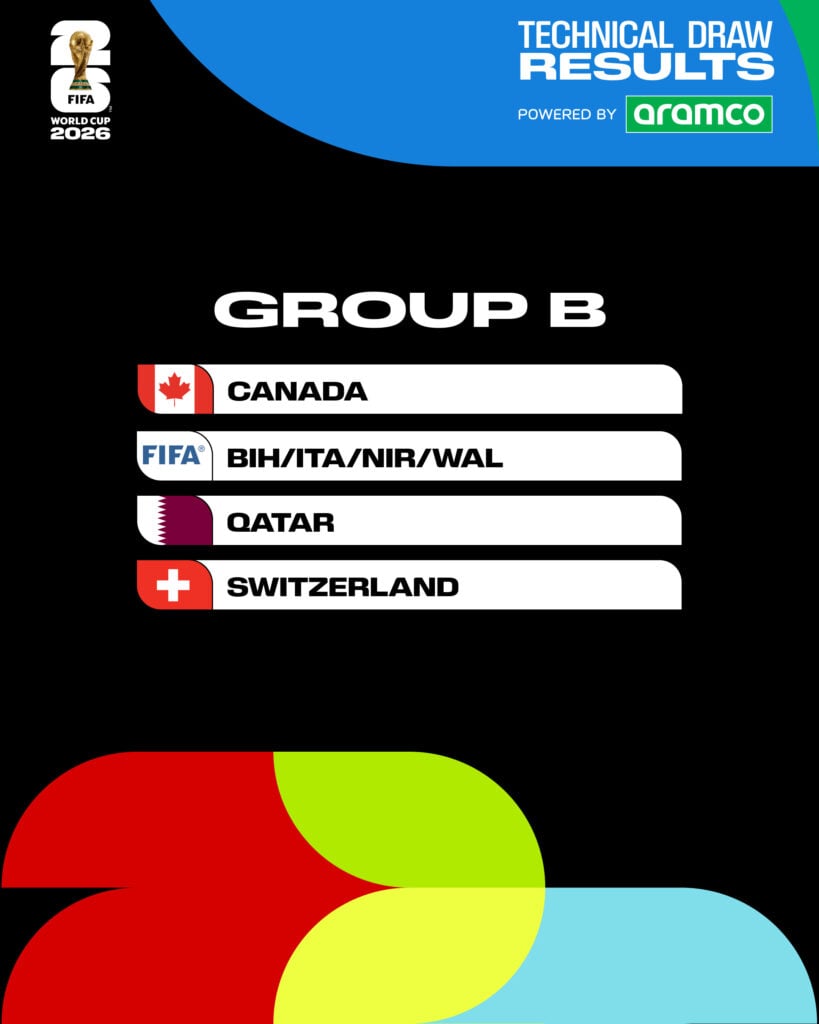 Group B: Canada, UEFA Playoff A winner (Italy/Northern Ireland/Wales/Bosnia-Herzegovina), Qatar, Switzerland