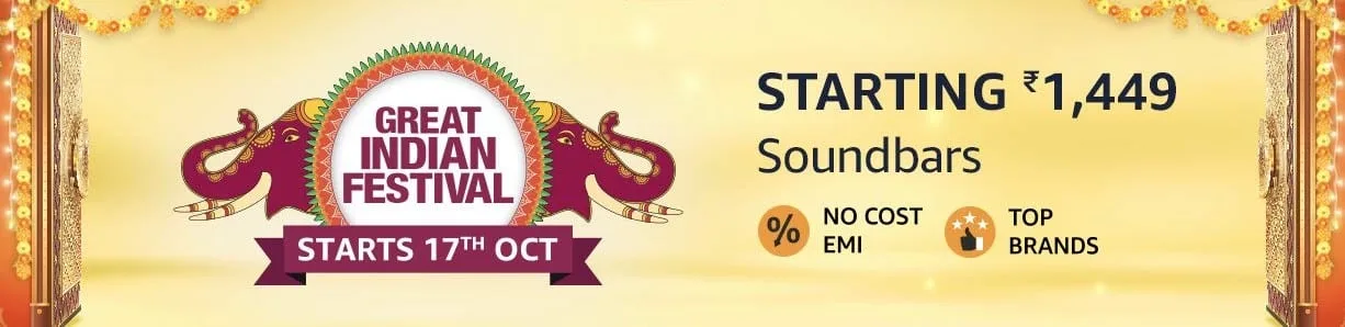 Amazon Great Indian Festival sale, the one time in a year price drop event by the e-commerce platform hardly misses any product category to include in the discount chart. Among them, soundbars are there too. In case you don’t know, Amazon announces the starting date of this Great Indian Festival sale, i.e. 17th October and with the announcement, it opens some of the offer pages.