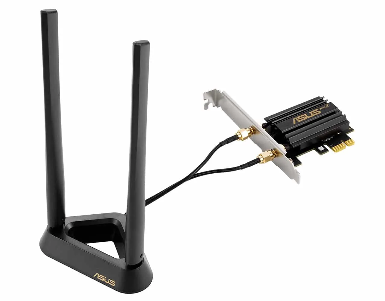 You need to connect this ASUS PCE-AX58BT to your desktop over a PCI-Express x1 slot and include a USB 2.0 header cable. In the package, a pair of external antennae are coming that are fixed to a magnetized base. You can place it anywhere, either on your desk or PC case.