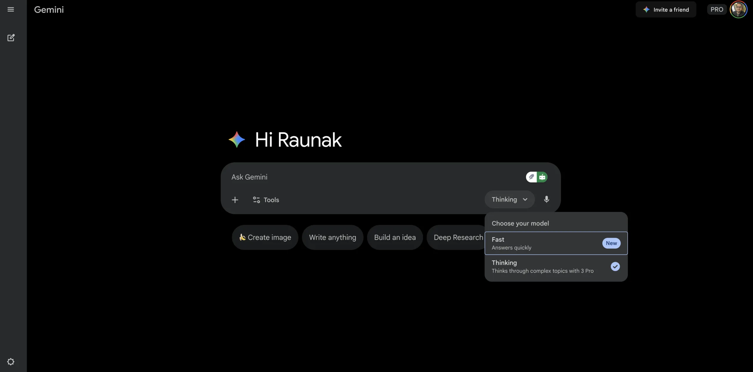 4. Choose “Gemini 3.0 Thinking”