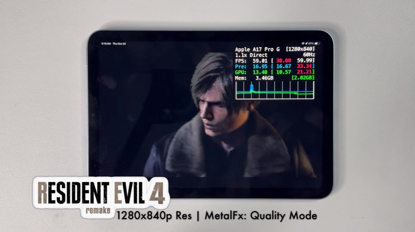 The iPad mini 7 can run Resident Evil 4 Remake at over 50 FPS, often reaching nearly 60 FPS, though this comes with some compromises in image quality.