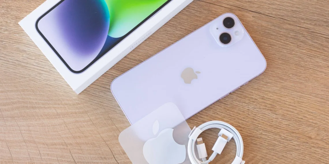 The Apple iPhone 14 Plus features dimensions of 160.8 x 78.1 x 7.4 mm and a weight of 204 g, may be measured on the machine. The front and back of the phone are made of Corning glass and an aluminum frame, which is available in varying colors, including Starlight, Midnight, Blue, Purple, and Product RED.