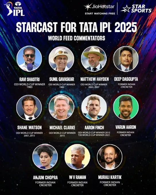 IPL 2025 Commentators List: National and World Feed