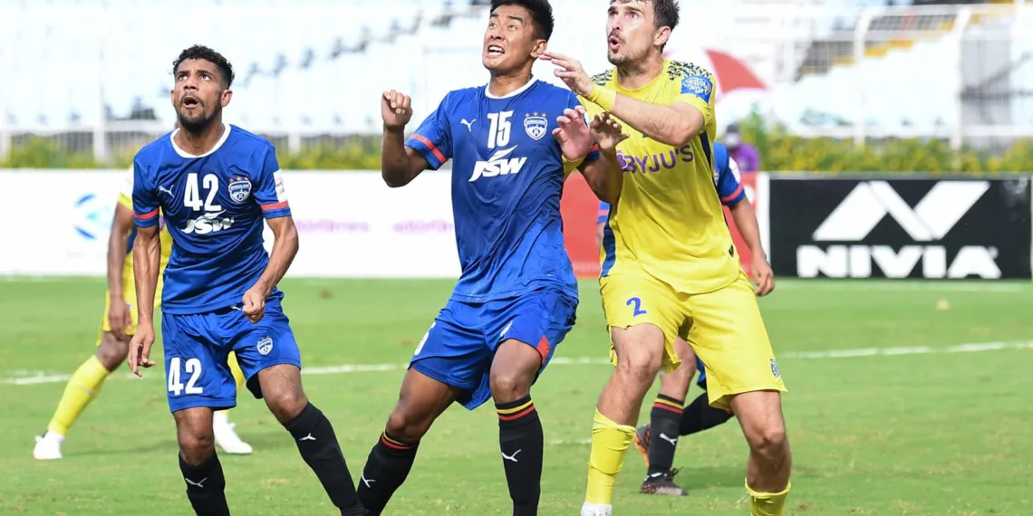 Bengaluru FC (BFC) defeated Kerala Blasters 2-0 in a thrilling all-ISL match at the Vivekananda Yuba Bharati Krirangan (VYBK) in Kolkata on Wednesday, September 15, 2021, to kick off their campaign in style. The team from the southernmost part of India was down to eight players on the field in the end. The Naushad Moosa-coached team’s heroes were Namgyal Bhutia and Leon Augustine, who both scored.