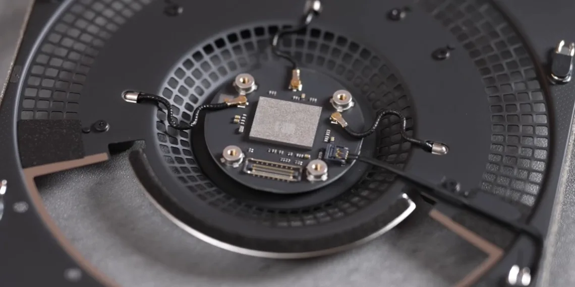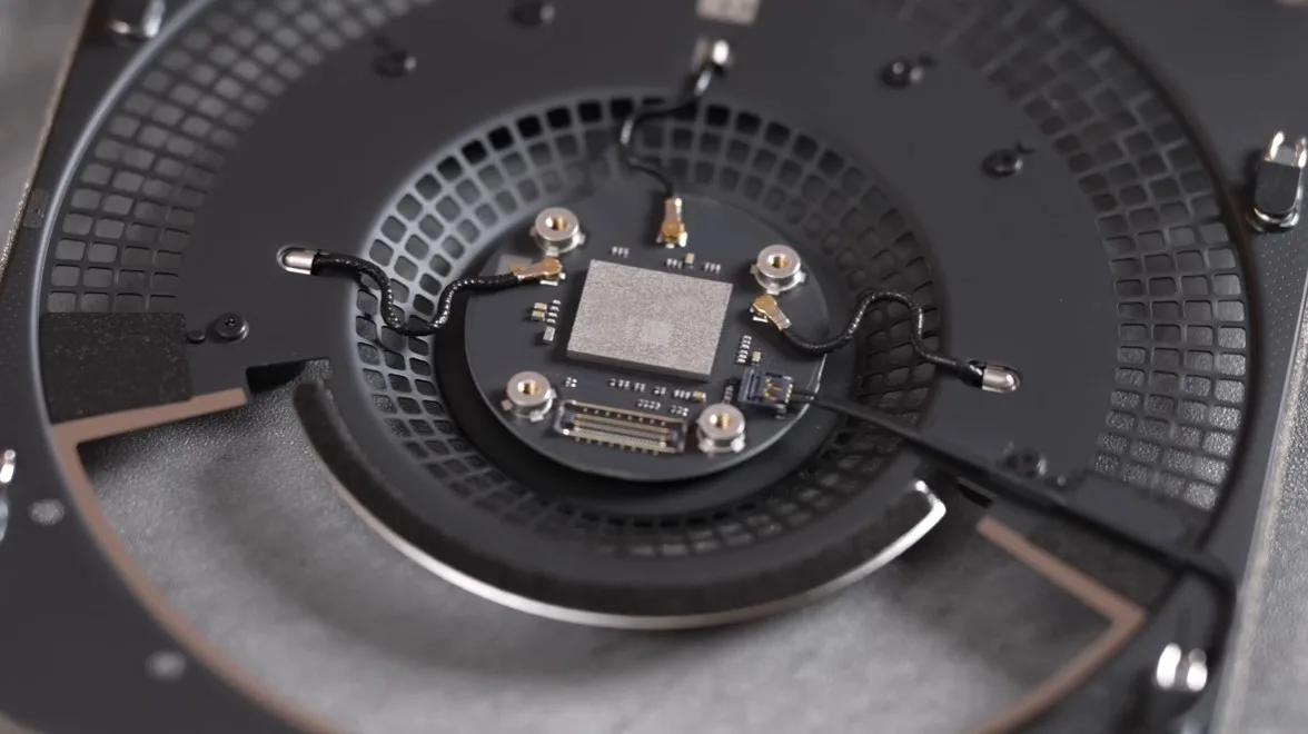 Max Tech, a YouTube reviewer, put that cramped design to the test — literally, by breaking the bottom black panel during a teardown. Still, that didn’t stop them from digging deeper. Among various items, they found a circular plate with many holes to allow both warm air and cool air to flow through the same path—a remarkable engineering feat. Teardown also discovered the antennas for better Wi-Fi and Bluetooth signals.