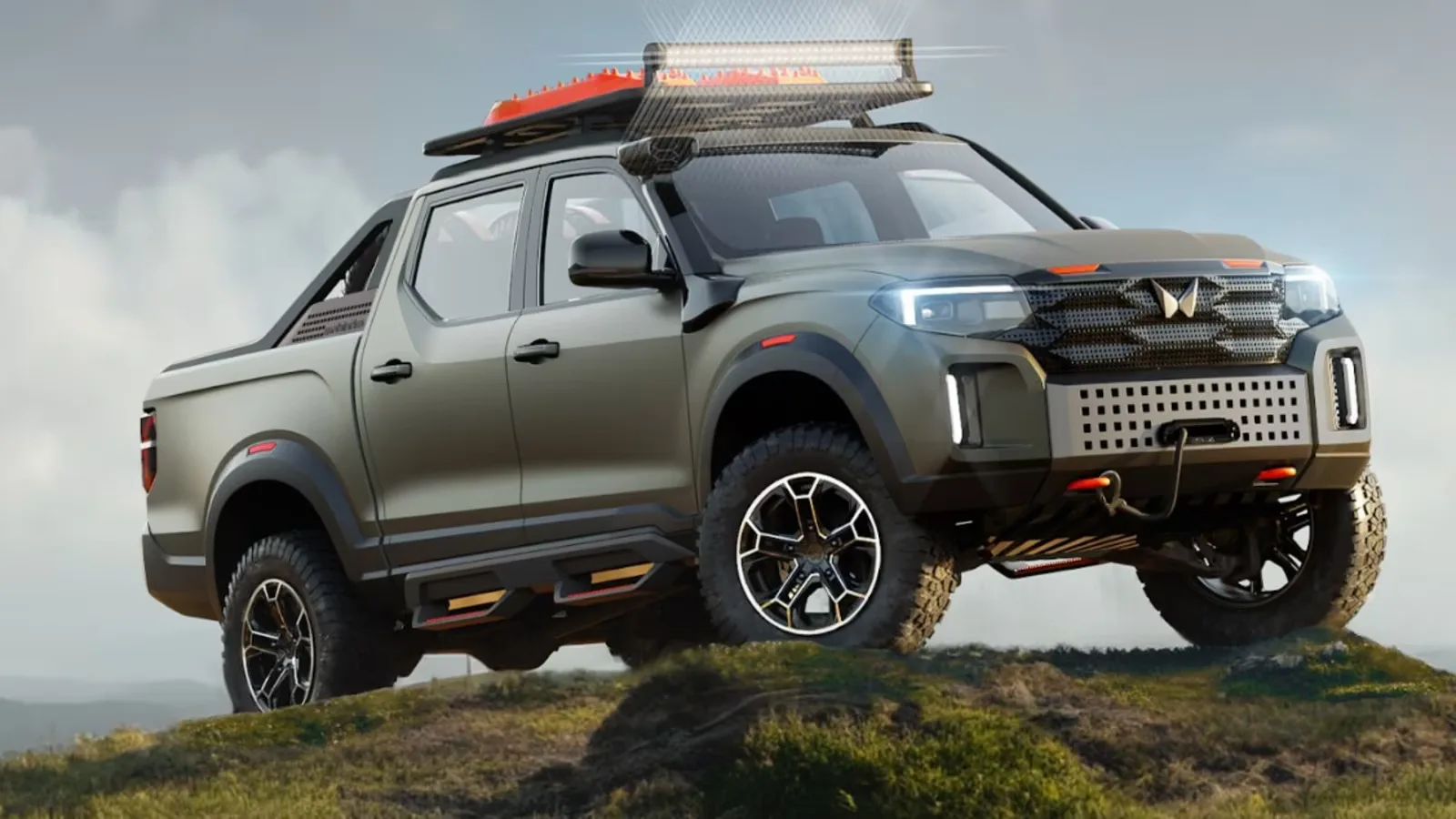 In comparison to the Scorpio N SUV, the Mahindra Scorpio X pickup showcases a front appearance with distinctive features like a roof-mounted LED light bar, blacked-out grille, prominent bumper, and front and rear winches. The side view includes a snorkel, stylish alloy wheels, side steps, and roof rails. The rear design echoes that of the front. The Mahindra Scorpio X will come equipped with an array of premium features such, as Level 2 ADAS technology, a display, digital instrument cluster, wireless charging capability, driver drowsiness detection system 5G connectivity support, front side and curtain airbags for safety measures, and trailer sway mitigation feature.