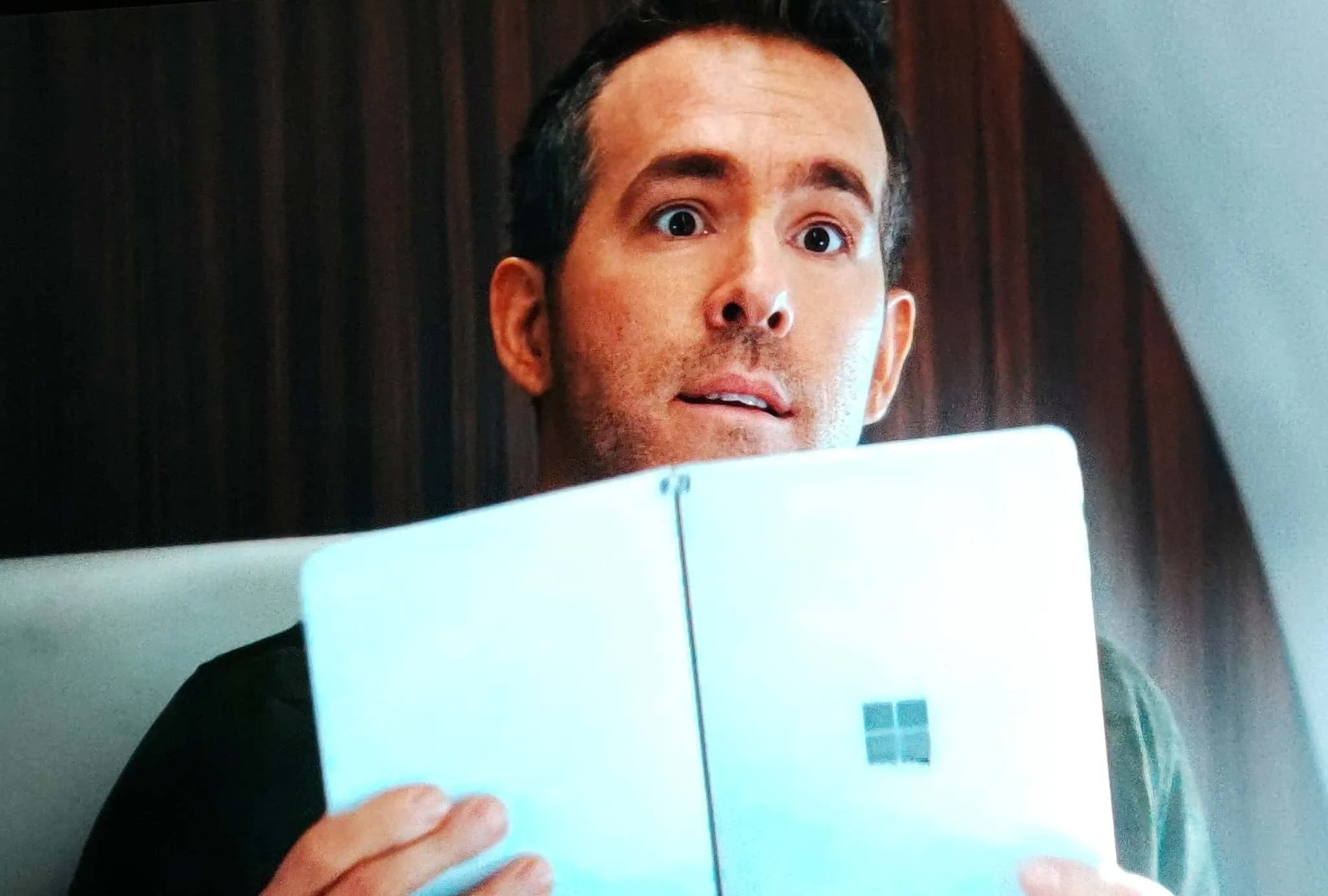 The Microsoft Surface Neo has just been spotted again. This time, the device has been spotted in Dwayne ‘The Rock’ Johnson’s latest Netflix film Red Notice, in Ryan Reynolds’s hands.