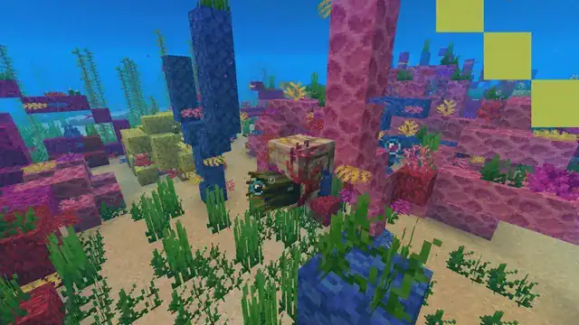 Unlike the standard cold ocean biomes with their dark blue waters, warm oceans create a tropical paradise perfect for exploration. The massive coral clusters aren’t just beautiful—they’re your visual confirmation you’re in the right place.