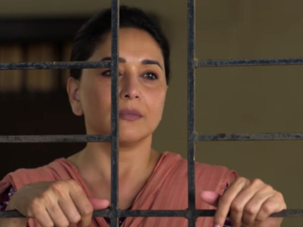 The trailer released on December 1st sets an unsettling tone. In a chilling sequence, Madhuri appears in a de-glamorous look, casually chopping vegetables while humming “Bholi Si Surat” from Dil To Pagal Hai. A radio bulletin interrupts, announcing that a serial killer remains uncaught after eight murders. The scene ends with Madhuri turning toward the camera with a disturbing smile.