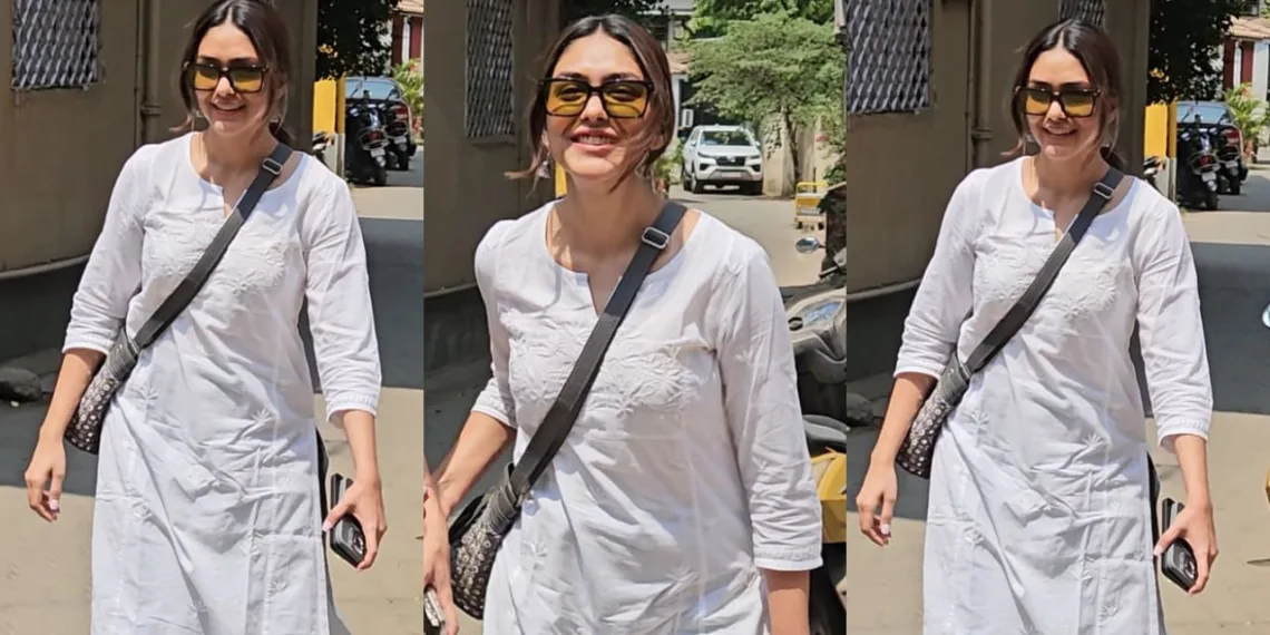In the ever-evolving world of Bollywood fashion, where glamour often takes center stage, Mrunal Thakur has emerged as a breath of fresh air with her latest street style ensemble. The “Hi Nanna” actress was recently spotted effortlessly blending traditional Indian elements with contemporary casual wear, creating a look that’s as versatile as it is stylish. Mrunal’s outfit choice – a classic white kurti paired with relaxed jeans, accessorized with jhumkas and sneakers – is not just a fashion statement; it’s a masterclass in balancing comfort with cultural flair.