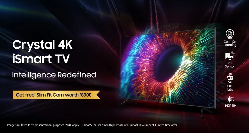 In response to the growing need for video calls, the Crystal 4K iSmart UHD TVs come with a Video Calling feature and a SlimFit Cam. This allows users to enjoy video calls or web conferences on the TV screen without compromising the design or viewing experience.