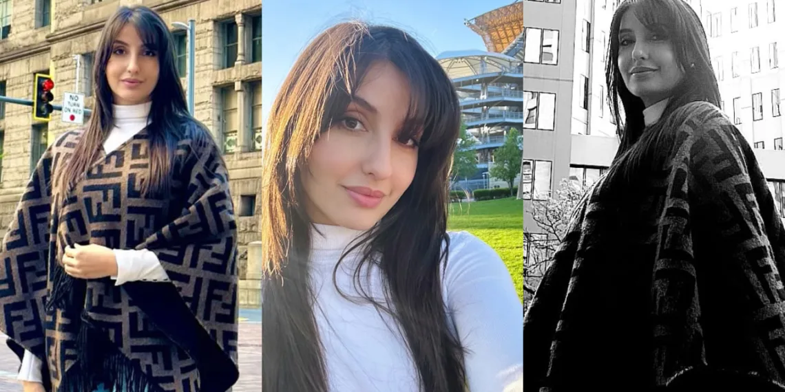 In the glittering world of Bollywood, where every public appearance is a potential fashion moment, Nora Fatehi continues to captivate audiences not just with her mesmerizing dance moves but also with her impeccable style choices. As the dancer-turned-actress embarks on an American adventure, she’s proving that vacation style can be both comfortable and luxurious. In a recent social media update that has set fashion circles abuzz, Nora showcased a laid-back yet undeniably chic ensemble centered around a show-stopping Fendi poncho with a price tag that’s as eye-catching as the piece itself.
