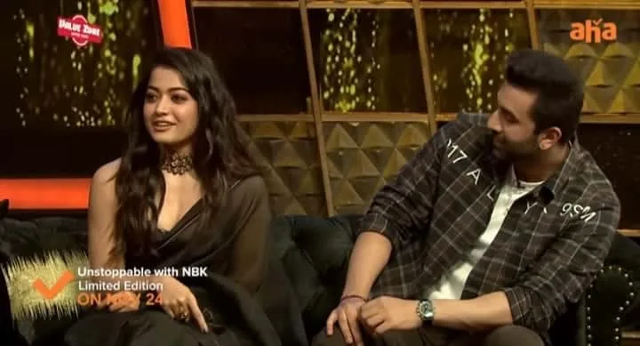 On the ongoing show, Nandamuri Balakrishna over the call asked Vijay Deverakonda to say “I love Rashmika.” This left Rashmika blushing. Ranbir gets a bit naughty on the show he even asks the Veteran Telugu actor to ask Rashmika “Who is the better hero?” for this question Rashmika had two options one was Ranbir Kapoor from ‘Animal’ and another was Vijay Deverakonda from ‘Arjun Reddy’. this question led Rashmika to blush in a dilemma.