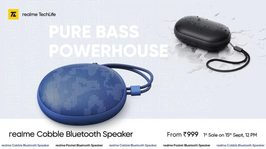 The Realme Cobble Bluetooth speaker retails for 1,799 INR and will go on sale on the 15th of September at 12 PM for an introductory price of 1,499 INR. It comes in Metal Black and Electronic Blue colors.