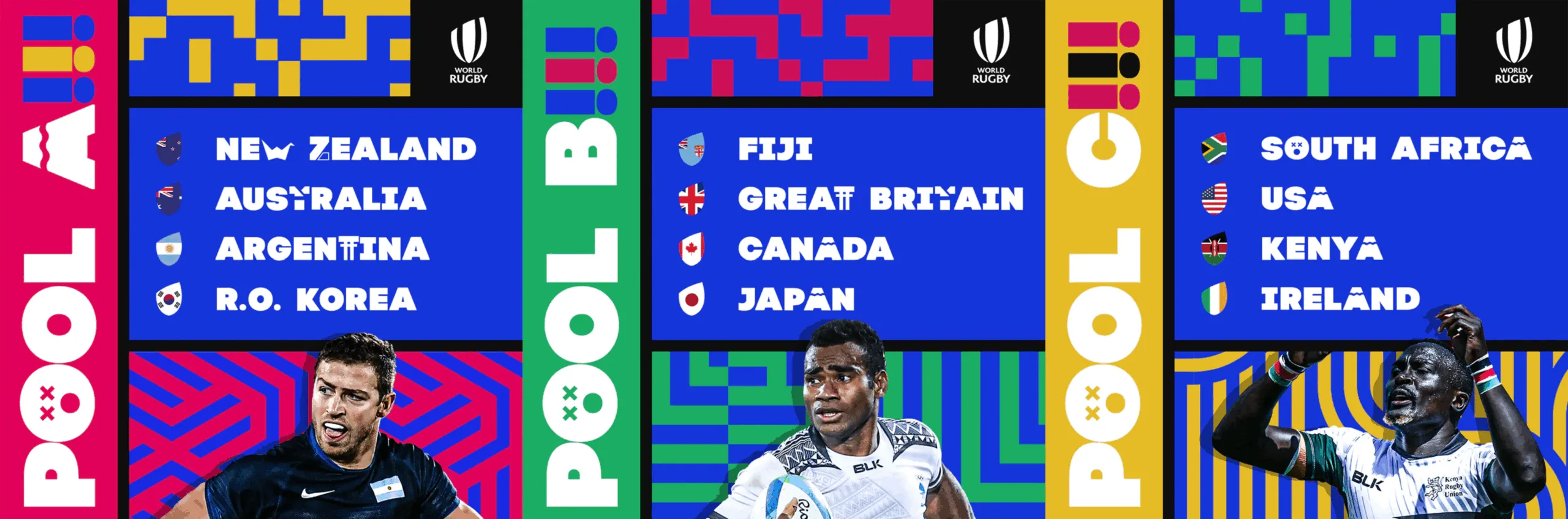 South Africa, bronze medalists in Rio, and USA are in Pool C having both achieved direct Olympic qualification by finishing in the top four of the HSBC World Rugby Sevens Series 2019, where the USA Eagles finished runners-up after reaching the medal podium in seven of the 10 Series rounds. Joining them are Kenya, who qualified courtesy of their first Rugby Africa men’s sevens title since 2015, and Olympic debutants Ireland, who secured the final spot thanks to a thrilling 28-19 victory over France in the World Rugby Sevens Repechage in Monaco earlier this month.