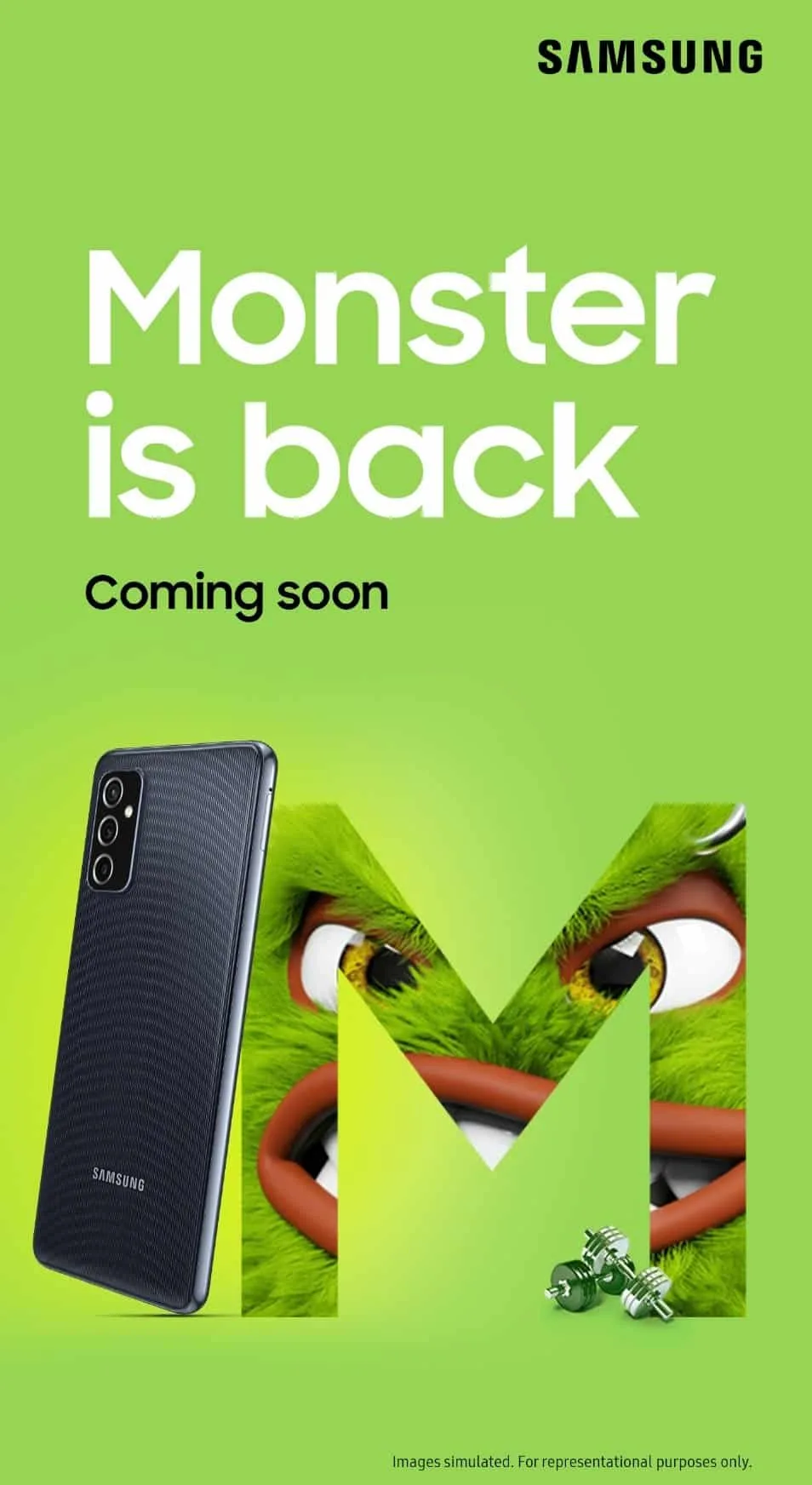 Samsung is yet again ready to launch another smartphone from the M series in India. The official poster of the upcoming smartphone has been revealed by the company. On the poster, we can only see the letter M and the M-series maskot.