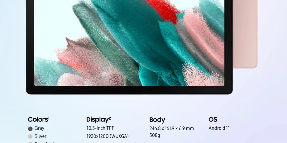 The Samsung Galaxy Tab A8 (2021) will be available in Europe later this month. As per Samsung’s branch in the Netherlands, the tab will begin at €230 or 19,780 INR. The US will get it in January and it will come in Gray, Silver, and the new Pink Gold color.