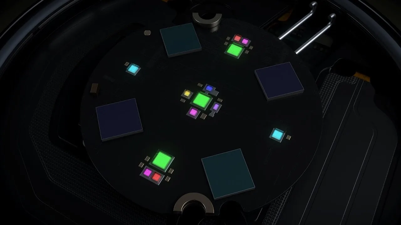 Samsung has more than doubled the performance of each photodiode, significantly reducing the number needed from eight to four. This redesign has freed up space for a larger variety of LEDs, ensuring their optimal placement across the sensor. The new sensor now includes Blue, Yellow, Violet, and Ultraviolet LEDs, in addition to an increased number of Green, Red, and Infrared LEDs. This integration and optimal arrangement allow Samsung to explore new aspects of health monitoring on wearables.