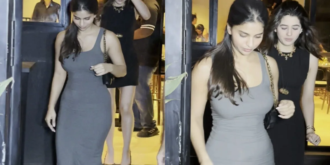 Suhana Khan demonstrated her innate fashion sensibility during a recent night out in Bandra, where she was photographed in a deceptively simple yet impeccably styled gray bodycon dress that showcased her talent for effortless dressing. The full-length figure-hugging silhouette perfectly complemented her frame while maintaining an understated elegance that has become her style signature. The dress featured a minimalist tank-top bodice with a square neckline—design elements that added architectural interest without sacrificing the garment’s clean lines.