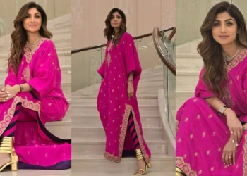 Shilpa Shetty Stuns in a ₹57,500 Gulabi Kaftan Set – A Perfect Blend of Elegance and Drama
