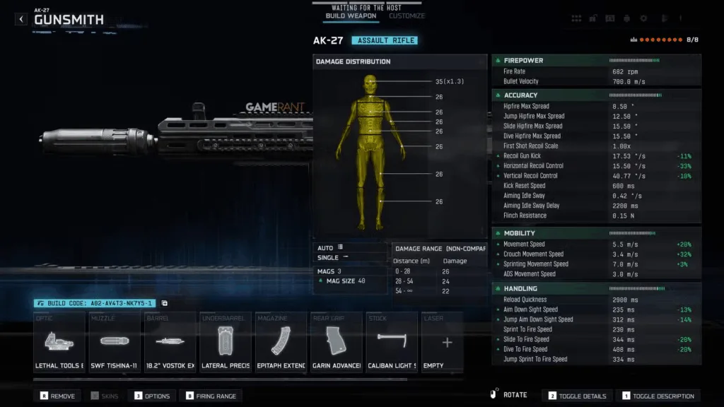 Headshot Optimization: The damage barrel attachment significantly increases headshot multipliers. Practice upper chest and head tracking to maximize the AK-27’s lethal potential.