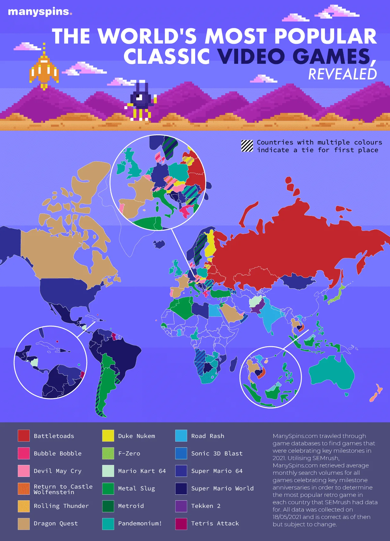 Determined to explore the world’s relationship with video games, ManySpins.com researched all classic video games that were celebrating a key milestone in 2021 – with a key milestone being determined as either a 20 year, 25 year, 30 year, or 35 year anniversary since the game’s initial release.