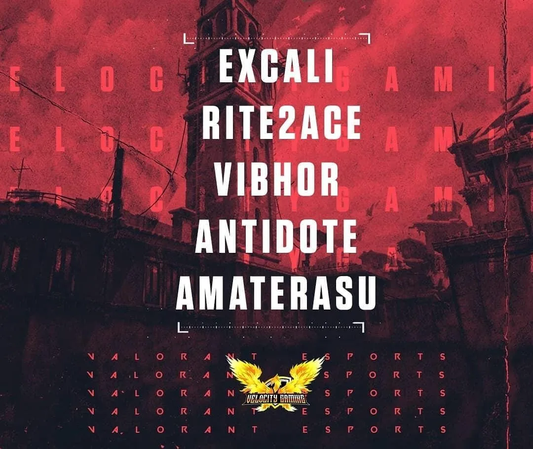 Velocity Gaming introduced their Valorant line up in July. The team was formed by SENTINEL. The team was founded with 5 ex-CS professionals of India; EXCALI, RITE2ACE, VIBHOR, ANTIDOTE & AMATERASU. AMATERASU becomes the IGL of the team.