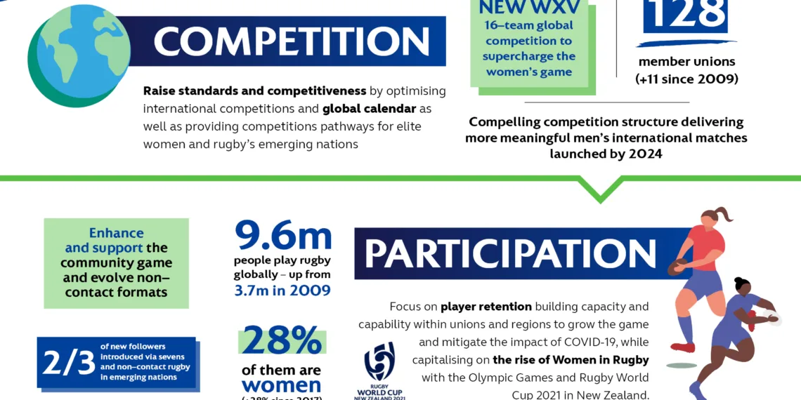 While recognising the challenges facing society and sport as a result of the COVID-19 pandemic, the plan sets out World Rugby’s long-term mission to support and enhance the game. It builds on strong foundations, with 9.6 million people playing the sport globally and the worldwide fan base increasing by two-thirds in rugby’s established markets and doubling in emerging markets over the past decade to more than 405 million.